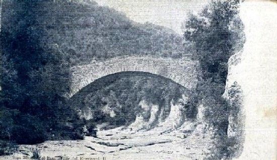 Vers 1920. Pont romànic sobre el riu Rossinyol.