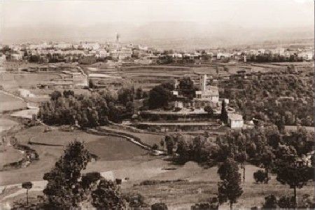Any 1960. Vista panoràmica amb el castell primer i el poble al fons situat al mig de l'altiplà del Moianès.