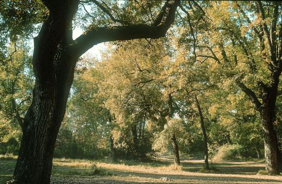 Tardor 2005 (Calders). La roureda amb roures grossos i vells i interior esclarissat.