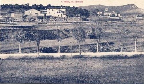 Any 1924. En primer terme veiem el mas Poses i més allunyat Mas Badó. Per la seva situació havien estat hostal i hotel respectivament.